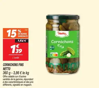 Actuellement en offre chez Netto : Cornichons fins netto ✅ Valable du 10-02 au 16-02.