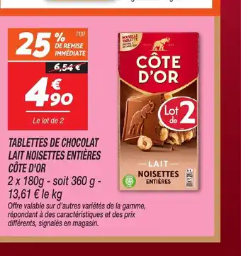 CÔTE D'OR Tablettes de chocolat lait noisettes entières offres et promotions en ligne chez Netto