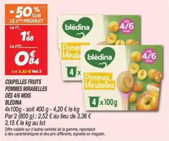 Offre Coupelles fruits pommes mirabelles dès 4/6 mois blédina chez Netto