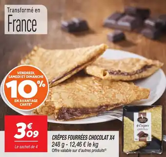 En plus de l'offre Crêpes fourrées chocolat x4, Netto propose une large gamme de produits. Consultez le Catalogue Netto hebdomadaire pour découvrir les meilleures offres et promotions. En plus de Crêpes fourrées chocolat x4, il y a aussi : 4 crepes fourrees, Crêpes fourrées & 4 crepes fourrees.
