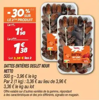 Actuellement en offre chez Netto : Dattes entières deglet nour netto ✅ Valable du 6-01 au 12-01.