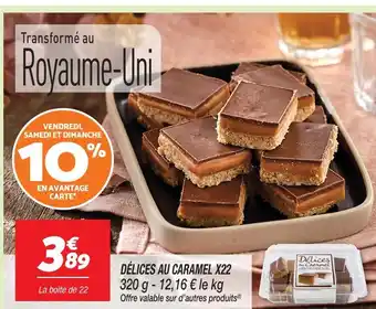 L'offre est disponible dans plusieurs magasins, vérifiez tous les produits pour obtenir le Délices au caramel délices au caramel x22 le moins cher. Si vous souhaitez savoir si l'article est en vente avec une plus grosse remise dans un autre magasin, consultez la catégorie 'Supermarché'. Ces offres pourraient aussi vous intéresser : Délices au caramel x22, 2 Délices vanille,caramel & Délices caramel beurre salé.