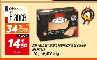 Offre Delpeyrat foie gras de canard entier cœur de gamme chez Netto