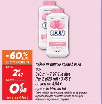 En plus de l'offre Dop crème de douche barbe à papa, Netto propose une large gamme de produits. Consultez le Catalogue Netto hebdomadaire pour découvrir les meilleures offres et promotions. En plus de Dop crème de douche barbe à papa, il y a aussi : DOP Crème de douche barbe à papa, Gel douche dop & Dop gel douche.