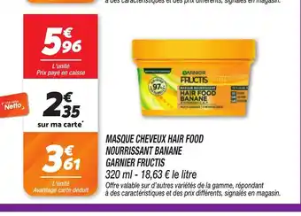 Actuellement en offre chez Netto : GARNIER FRUCTIS Masque cheveux hair food nourrissant banane ✅ Valable du 17-03 au 23-03.