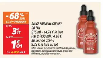 Actuellement en offre chez Netto : Go tan sauce sriracha smokey ✅ Valable du 17-02 au 23-02.