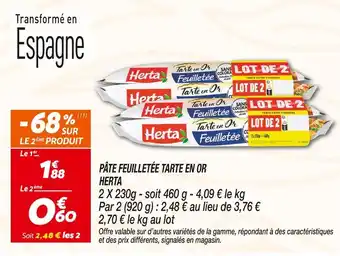 Offre Herta pâte feuilletée tarte en or chez Netto