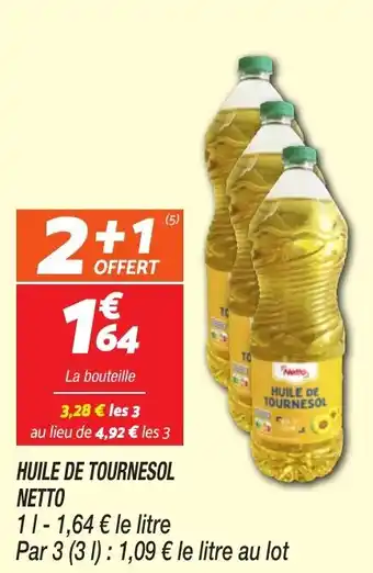 Actuellement en offre chez Netto : Huile de tournesol netto ✅ Valable du 27-01 au 2-02.