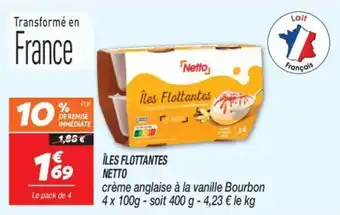En plus de l'offre Îles flottantes netto, Netto propose une large gamme de produits. Consultez le Catalogue Netto hebdomadaire pour découvrir les meilleures offres et promotions. En plus de Îles flottantes netto, il y a aussi : Netto îles flottantes, Netto madeleines & MAÏS DOUX NETTO.