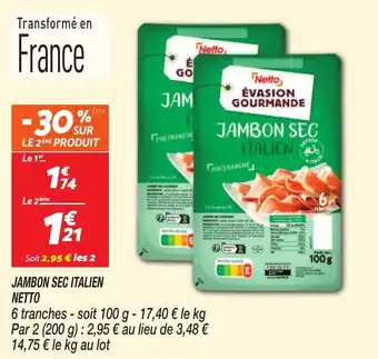 Actuellement en offre chez Netto : Jambon sec italien netto ✅ Valable du 10-02 au 16-02.