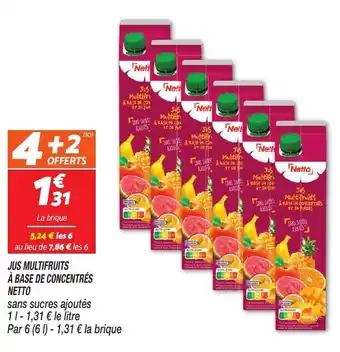 Le prix de l'offre JUS MULTIFRUITS À BASE DE CONCENTRÉS NETTO se trouve également en haut de la page, ainsi que la date à laquelle l'offre est disponible. Vous pouvez également vérifier les prix dans le Catalogue Netto actuel ou sur le site Internet de Netto. Les offres vous permettent d'acheter les produits Netto au prix le plus bas.