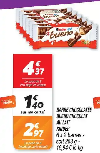 Offre Kinder bueno chocolat au lait chez Netto