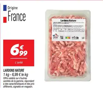 Actuellement, LARDONS NATURE est en promotion chez Netto. Toutes les informations utiles comme le prix, les conditions et la durée de validité sont affichées sur cette page. Consultez également les promotions similaires pour LARDONS NATURE, afin de faire le meilleur choix. La promo LARDONS NATURE est valable du 28-04-2026 au 11-05-2026. Si elle est expirée, regardez les autres offres équivalentes. Vous pouvez aussi suivre cette catégorie de produit pour être alerté lorsqu’une nouvelle promotion LARDONS NATURE apparaît chez Netto.Questions fréquemment posées au sujet de LARDONS NATURE