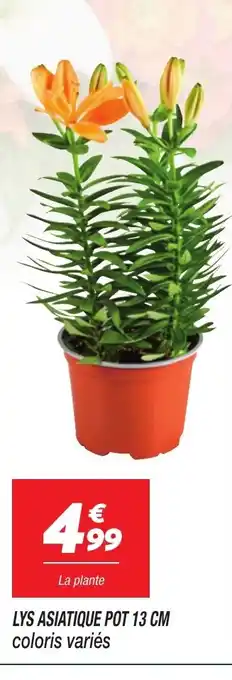 L'offre est disponible dans plusieurs magasins, vérifiez tous les produits pour obtenir le Lys asiatique pot le moins cher. Si vous souhaitez savoir si l'article est en vente avec une plus grosse remise dans un autre magasin, consultez la catégorie 'Supermarché'. Ces offres pourraient aussi vous intéresser : Lys asiatique pot 13 cm, Le pot de chrysanthèmes et lys ou d'orchidées, lys et roses & Assortiment asiatique.