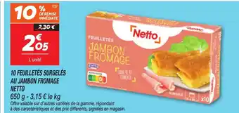 Offre NETTO 10 feuilletés surgelés au jambon fromage chez Netto