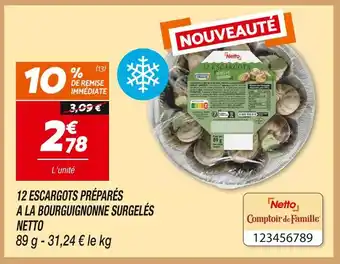 Actuellement en offre chez Netto : Netto 12 escargots préparés à la bourguignonne surgelés ✅ Valable du 16-12 au 24-12.
