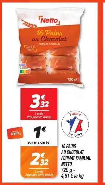 Actuellement en offre chez Netto : NETTO 16 pains au chocolat format familial ✅ Valable du 24-02 au 2-03.
