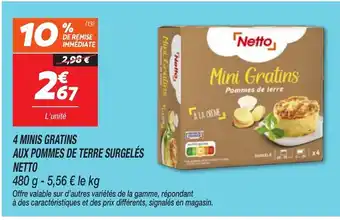 Actuellement en offre chez Netto : NETTO 4 minis gratins aux pommes de terre surgelés ✅ Valable du 20-01 au 26-01.