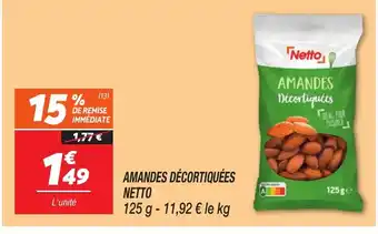 Actuellement en offre chez Netto : NETTO Amandes décortiquées ✅ Valable du 17-02 au 23-02.
