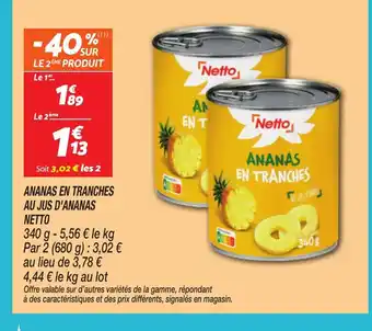 NETTO Ananas en tranches au jus d'ananas : offres et promos Netto à découvrir