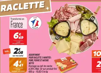 NETTO Assortiment pour raclette 3 variétés : fumé, poivre et nature : offres et promos Netto à découvrir