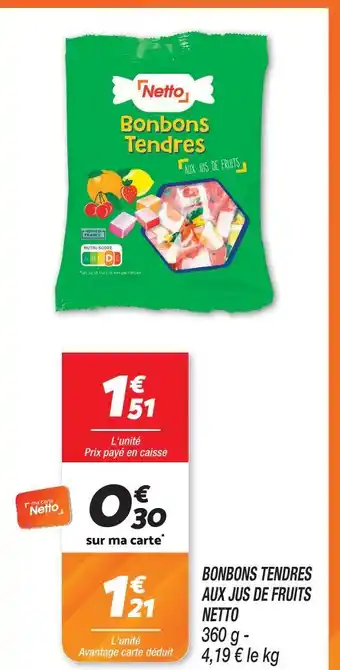 Actuellement en offre chez Netto : Netto bonbons tendres aux jus de fruits ✅ Valable du 10-02 au 16-02.