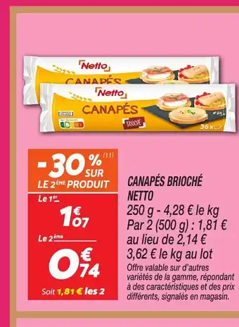Actuellement en offre chez Netto : NETTO Canapés brioché ✅ Valable du 26-12 au 31-12.