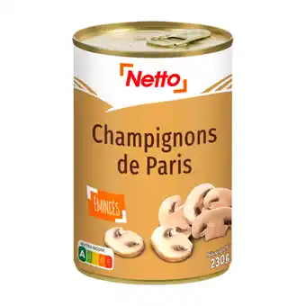 Actuellement en offre chez Netto : Netto champignons de paris émincés ✅ Valable du 6-01 au 12-01.