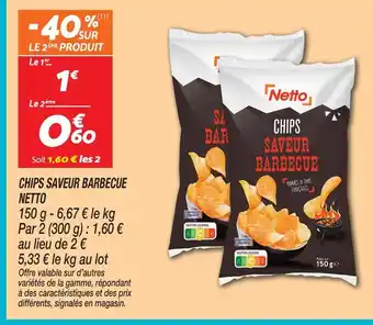 Actuellement en offre chez Netto : Netto chips saveur barbecue ✅ Valable du 10-03 au 16-03.