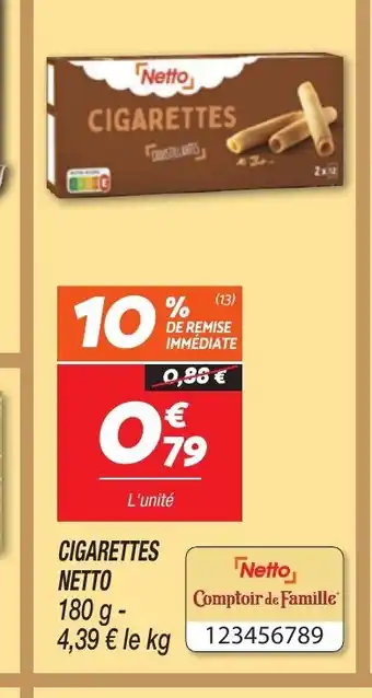 Actuellement en offre chez Netto : NETTO Cigarettes ✅ Valable du 16-12 au 24-12.