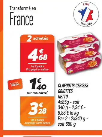 NETTO Clafoutis cerises griottes : offres et promos Netto à découvrir