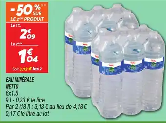 Actuellement en offre chez Netto : NETTO Eau minérale ✅ Valable du 17-03 au 23-03.