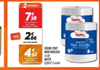 Actuellement en offre chez Netto : NETTO Essuie-tout maxi rouleau ✅ Valable du 20-01 au 26-01.