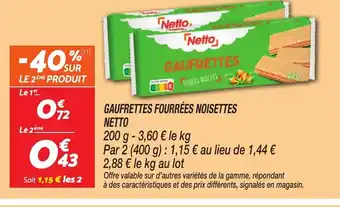 Actuellement en offre chez Netto : NETTO Gaufrettes fourrées noisettes ✅ Valable du 17-02 au 23-02.