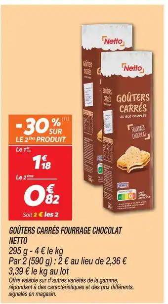 Netto goûters carrés fourrage chocolat : offres et promos Netto à découvrir