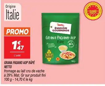 NETTO Grana padano aop râpé offres et promotions en ligne chez Netto