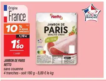 Actuellement en offre chez Netto : NETTO Jambon de paris ✅ Valable du 20-01 au 26-01.