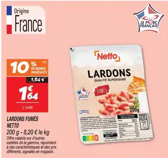 Actuellement en offre chez Netto : Netto lardons fumés ✅ Valable du 21-04 au 27-04.