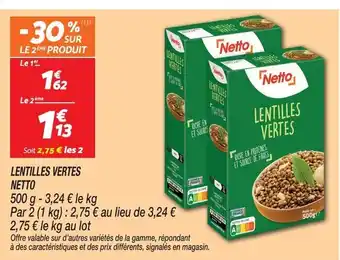Actuellement en offre chez Netto : Netto lentilles vertes ✅ Valable du 27-01 au 2-02.