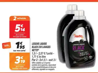 Actuellement en offre chez Netto : Netto lessive liquide black x30 lavages(b) ✅ Valable du 24-02 au 2-03.