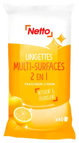 Actuellement en offre chez Netto : Netto lingettes multi-surfaces 2 en 1 fraicheur citron x40 ✅ Valable du 6-01 au 12-01.