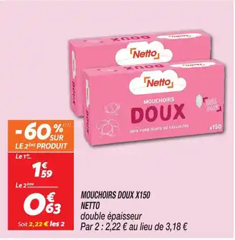 Actuellement en offre chez Netto : Netto mouchoirs doux ✅ Valable du 24-02 au 2-03.