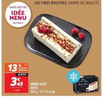 Actuellement en offre chez Netto : NETTO Nougat glacé ✅ Valable du 26-12 au 31-12.