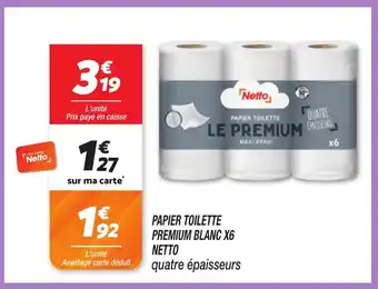 Actuellement en offre chez Netto : NETTO Papier toilette premium blanc x6 ✅ Valable du 3-03 au 9-03.