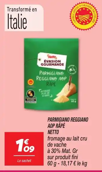 NETTO Parmigiano reggiano aop râpé : offres et promos Netto à découvrir