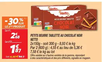 Actuellement en offre chez Netto : Netto petits beurre tablette au chocolat noir ✅ Valable du 17-02 au 23-02.