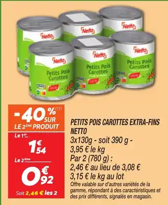 Offre NETTO Petits pois carottes extra-fins chez Netto
