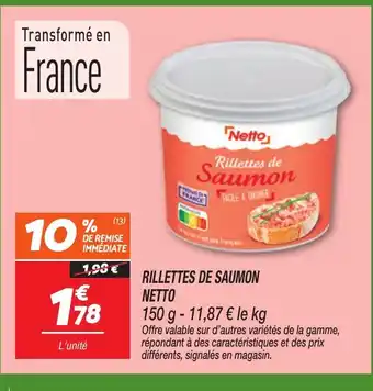 Actuellement en offre chez Netto : NETTO Rillettes de saumon ✅ Valable du 17-03 au 23-03.