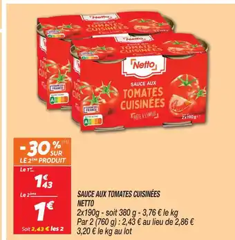Netto sauce aux tomates cuisinées : offres et promos Netto à découvrir