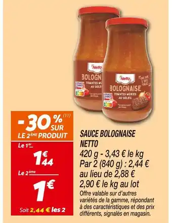 Offre Netto sauce bolognaise chez Netto